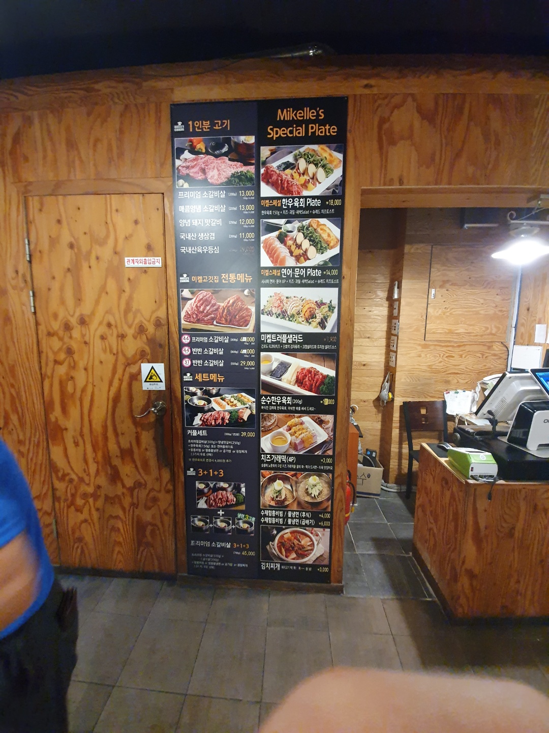 미켈고깃집은 파스텔 파란색 톤의 페인트와 흰색 간판이 참으로 깔끔해보였다.