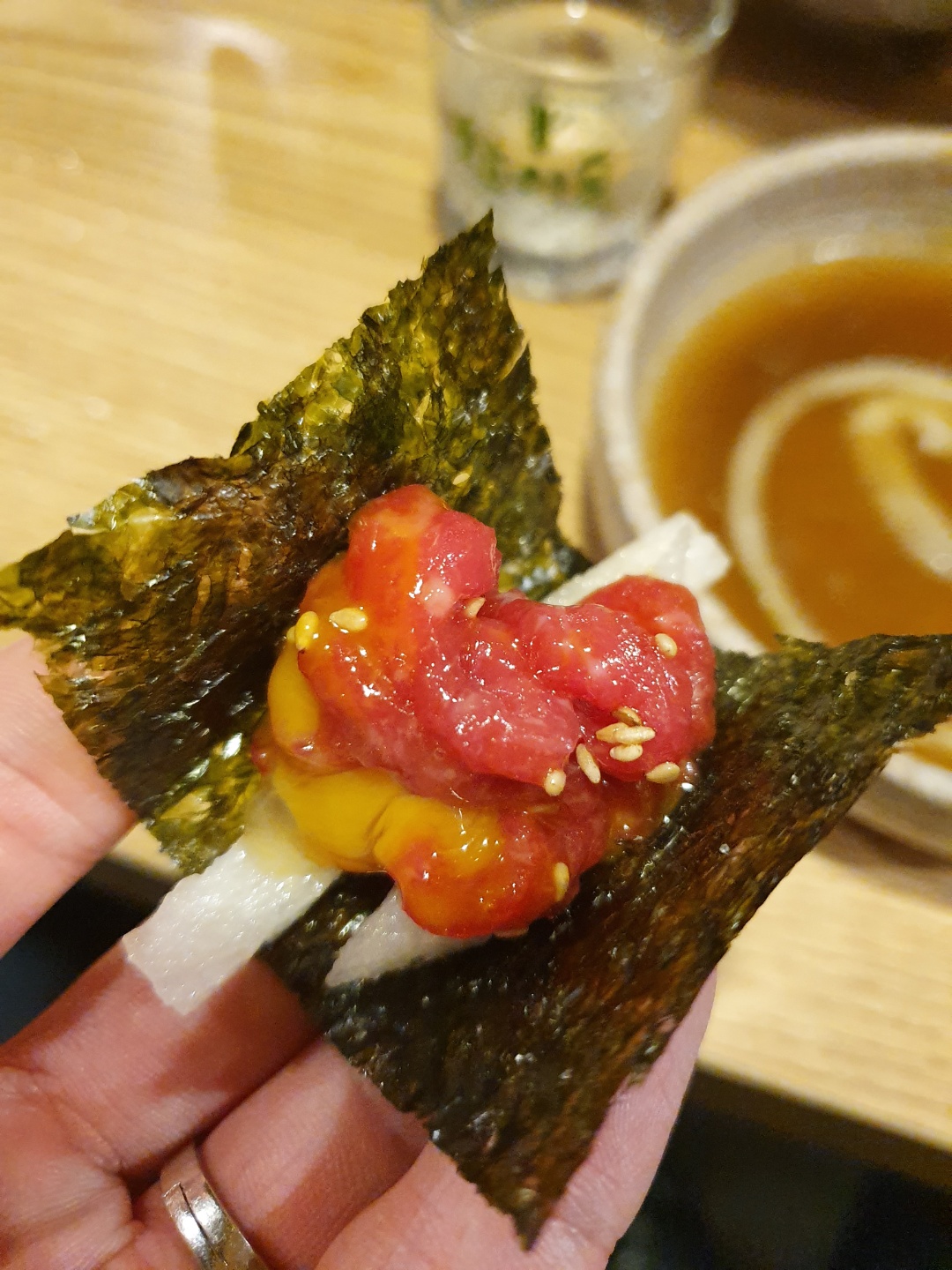 여기 테이블이 생각보다 작아서 둘곳이 없었지만 맛은 있었다.