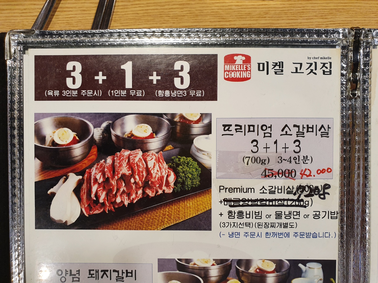 3+1+3 셋트는 소갈비살 3인분에 추가로 1인분을 더주고 냉면 3그릇을 주는 셋트 구성인데 나름 가성비가 있는 구성이다.
