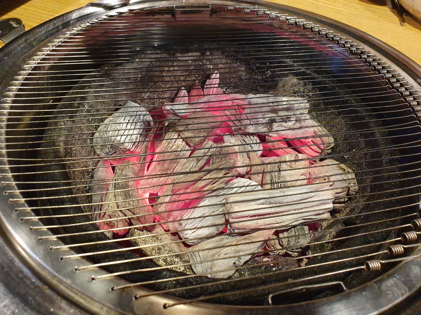 불의 세기도 강하지 않고 은은해서 소고기 구어먹기에 최적의 숯 상태이다.