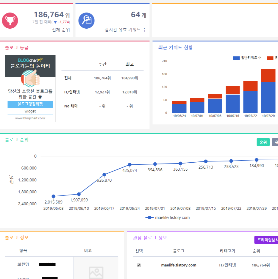 나의 블로그에 대한 특정한 기준과 함께 전체 블로그 순위를 보여주는 사이트이다.