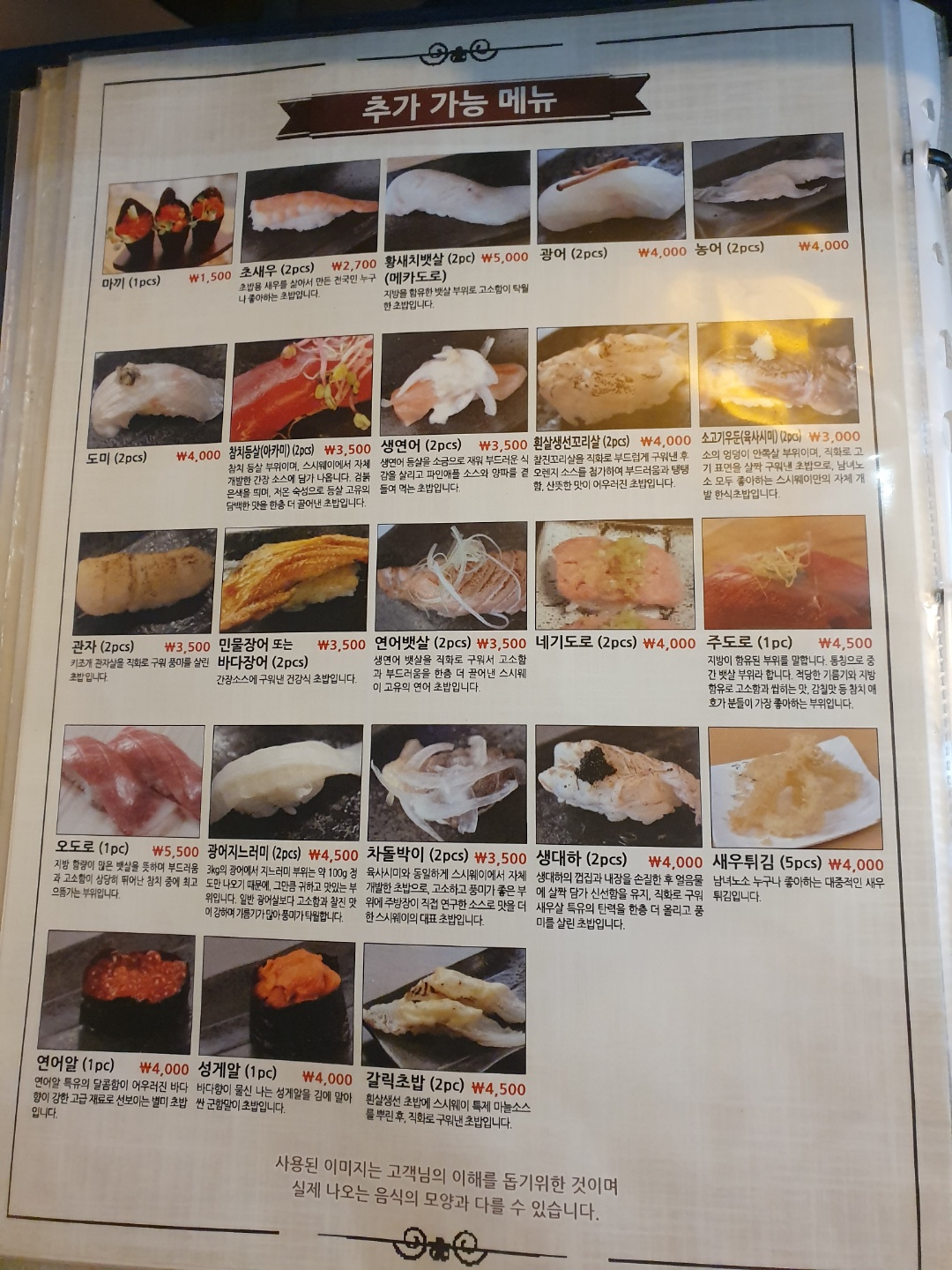 4인 가족 기준으로 보통 위 메뉴를 시키면 합리적으로 맛있는 초밥을 먹을 수 있다.