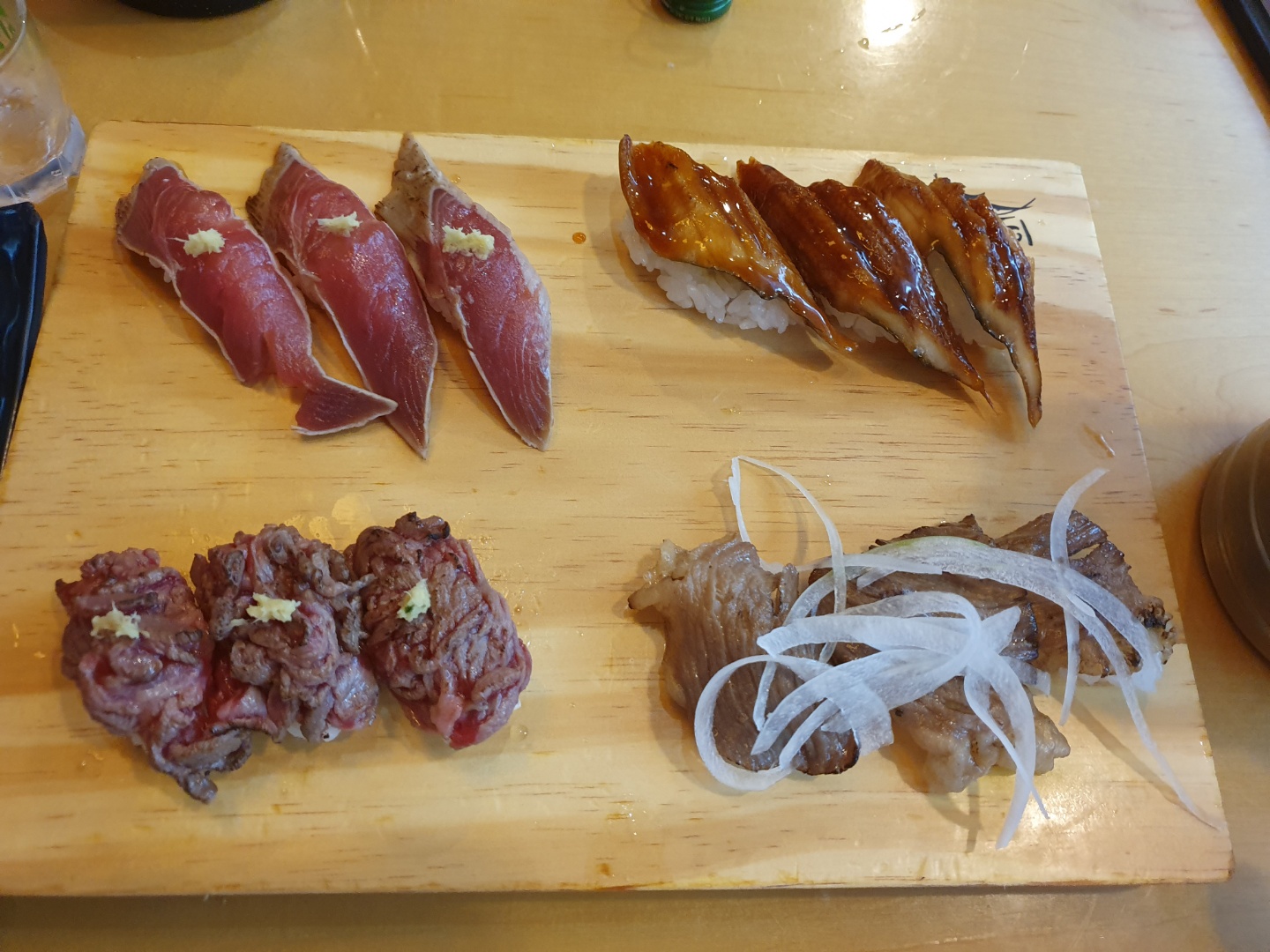 소고기를 이용한 초밥, 참치 훈제, 장어 초밥이 나왔다.