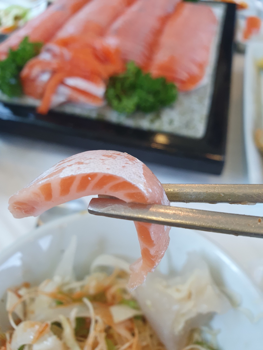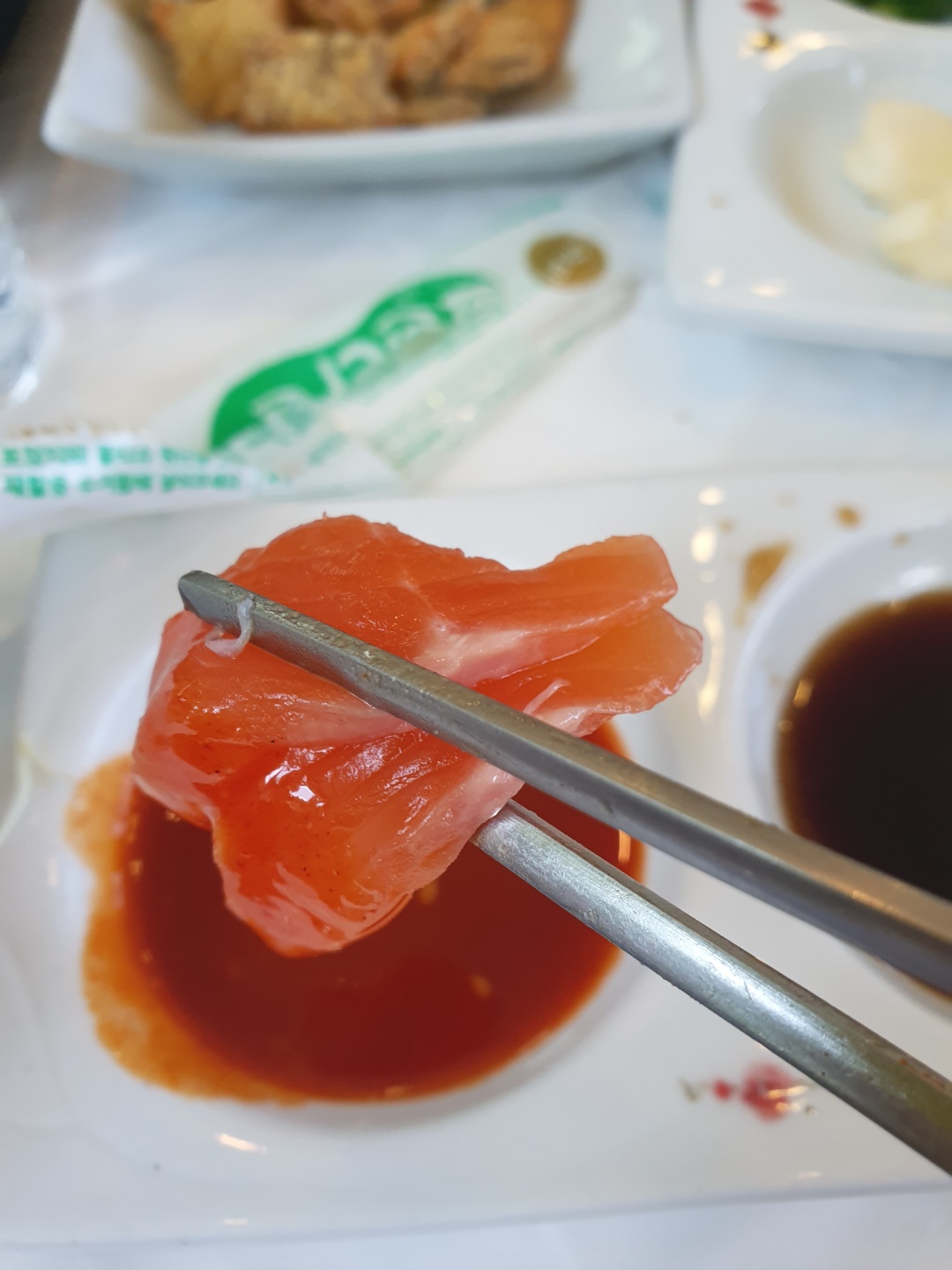 송어회도 뱃살부위가 있는데, 딱 보았을때도 지방이 어느정도 많이 포함되어있기 때문에 더욱 고소한 맛을 낸다.