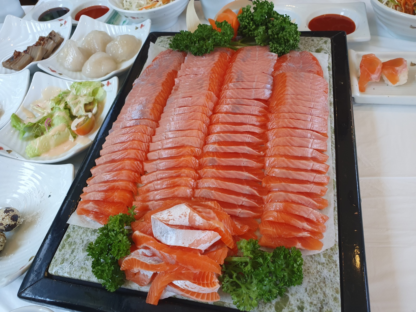 가운데 특수부위가 모아져있고, 가지런히 회가 놓여져있다.
